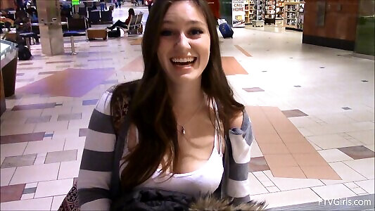 Public flashing arouses the pretty woman with lovely congenital boobs